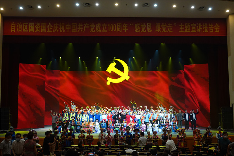 5月30日,由自治區國資委黨委主辦,廣西北部灣投資集團、集團公司黨委承辦,廣西路橋工程集團黨委、北京人間道文化傳播有限公司協(xié)辦的“恰是風(fēng)華正茂——自治區國資國企慶祝中國共產(chǎn)黨成立100周年‘感黨恩 跟黨走’主題宣講報告會(huì )”在廣西人民會(huì )堂精彩亮相。集團公司黨委書(shū)記、董事長(cháng)黃軒莊,黨委副書(shū)記、紀委書(shū)記藍廖國,首席編輯曹光哲出席報告會(huì )。