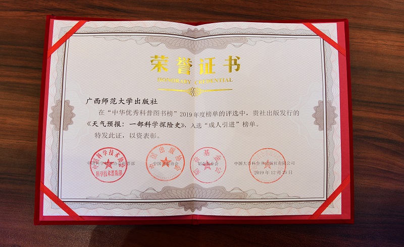 1月8日上午,“中華優(yōu)秀科普圖書(shū)榜”2019年度榜單在京揭曉,集團公司出版的《天氣預報:一部科學(xué)探險史》與其他9本圖書(shū)最終入選?;顒?dòng)現場(chǎng),集團公司黨委書(shū)記、董事長(cháng)黃軒莊代表集團公司上臺領(lǐng)取證書(shū)。