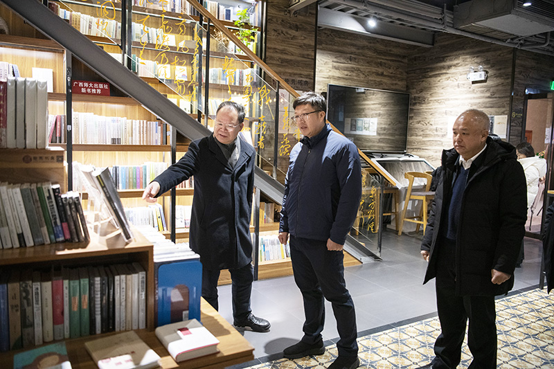 12月12日上午,自治區黨委宣傳部副部長(cháng)、自治區人民政府新聞辦公室主任黎攀率國際傳播能力建設調研組到集團公司開(kāi)展調研,參觀(guān)了社史館、獨秀書(shū)房·旗艦店,并進(jìn)行了座談交流。集團公司黨委書(shū)記、董事長(cháng)黃軒莊,總經(jīng)理黃毓,校黨委宣傳部副部長(cháng)孟旭瓊陪同調研。調研座談會(huì )由校黨委副書(shū)記趙鐵主持。