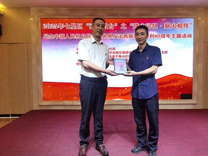 活動(dòng)通過(guò)《烽火少年》圖書(shū)選讀、情景演繹、互動(dòng)問(wèn)答等環(huán)節,抗戰老兵羅偉南現場(chǎng)講述抗戰經(jīng)歷等多種形式,讓紅色記憶深入人心,進(jìn)一步激發(fā)了青少年的愛(ài)國情懷。趙運仕副總編輯代表集團公司向社區捐贈抗戰主題圖書(shū)《“烽火少年”系列(全4冊)》,希望通過(guò)社區,傳承和弘揚偉大抗戰精神,引導青少年樹(shù)立正確歷史觀(guān),厚植家國情懷。