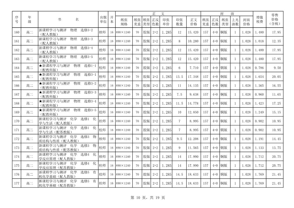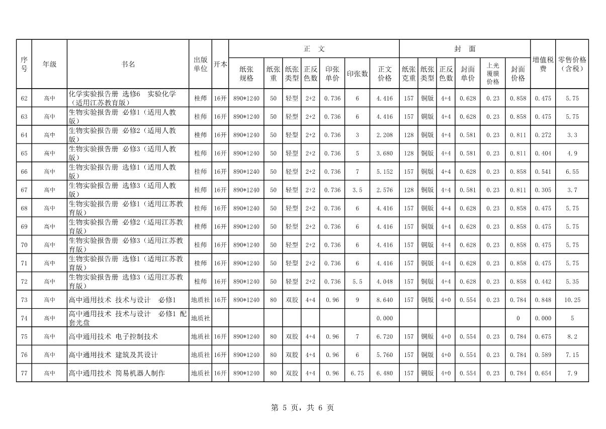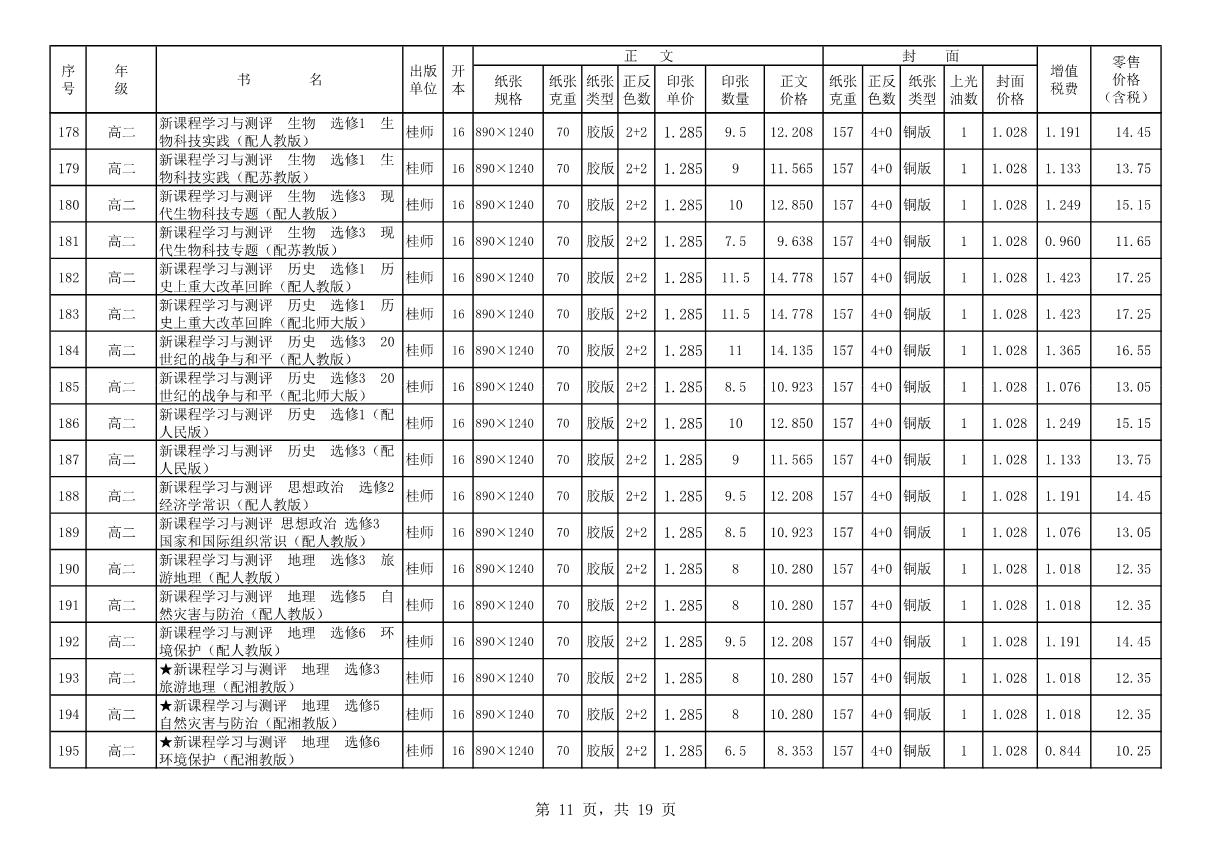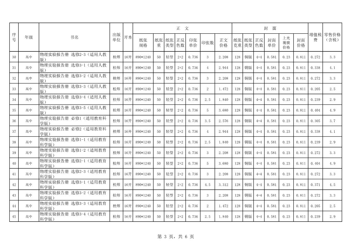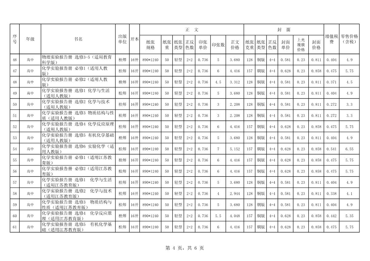教材、教輔價(jià)格公示
