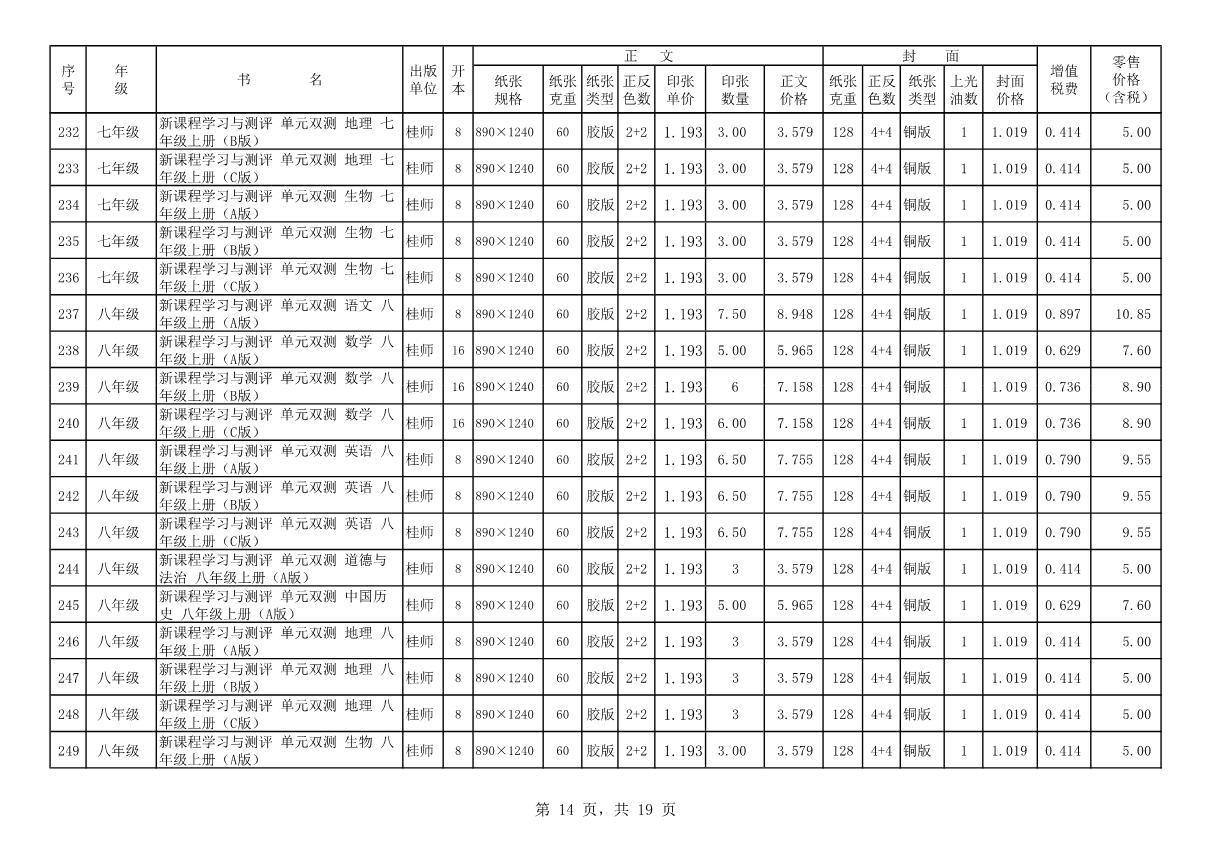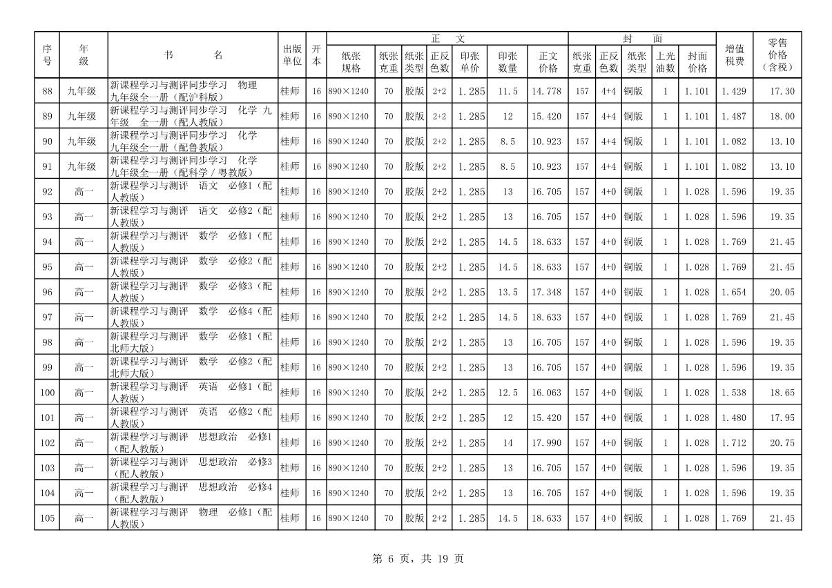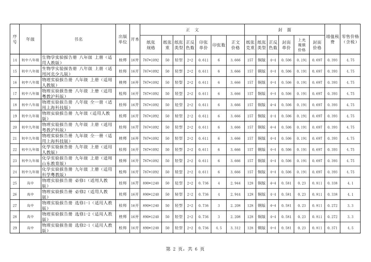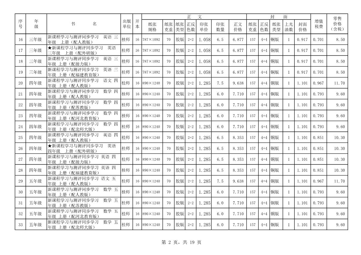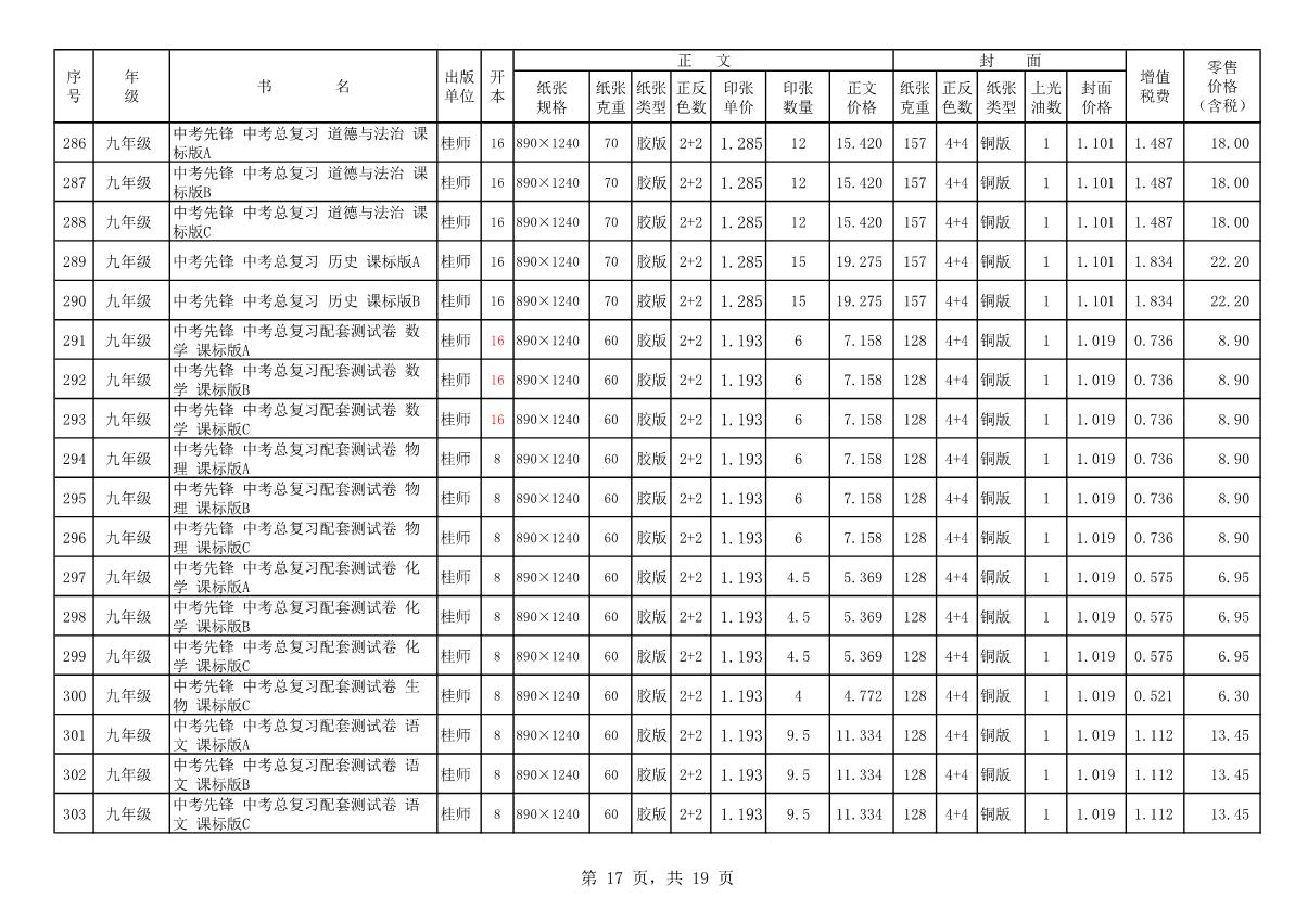 教材、教輔價(jià)格公示