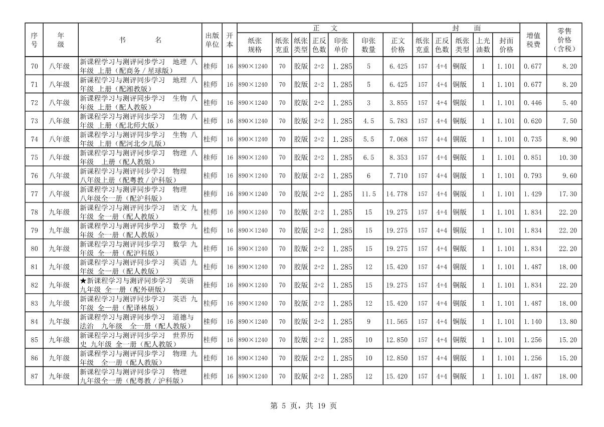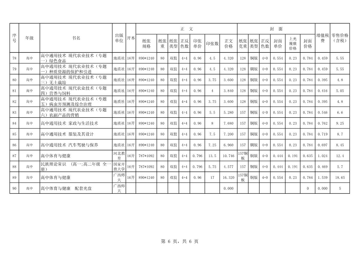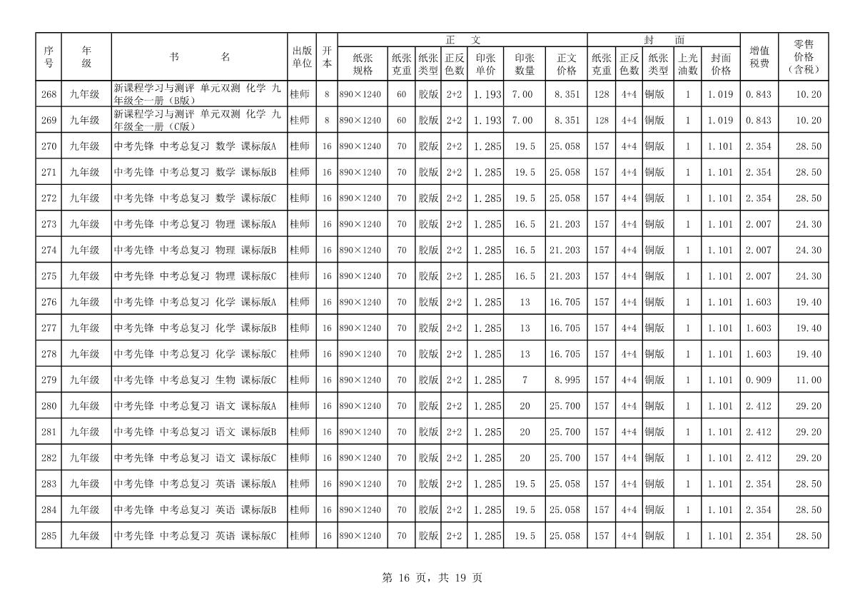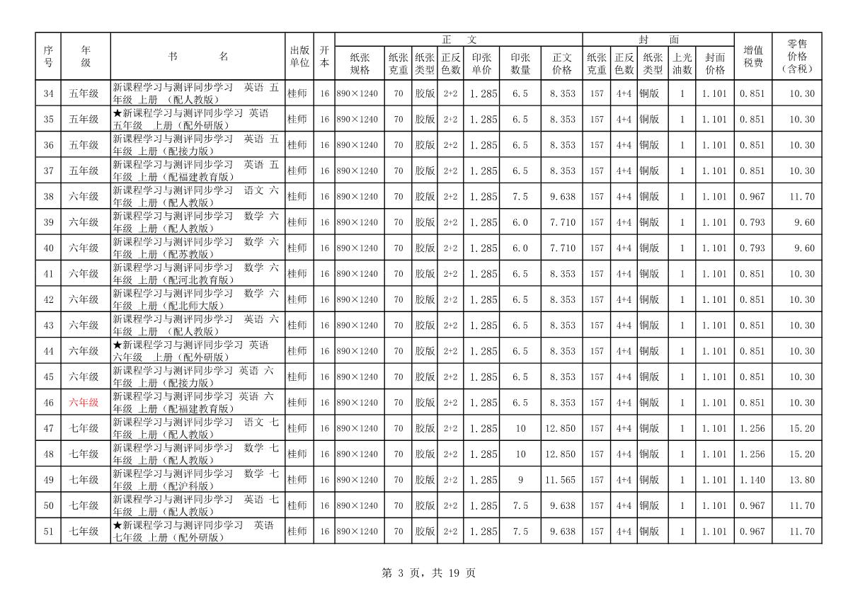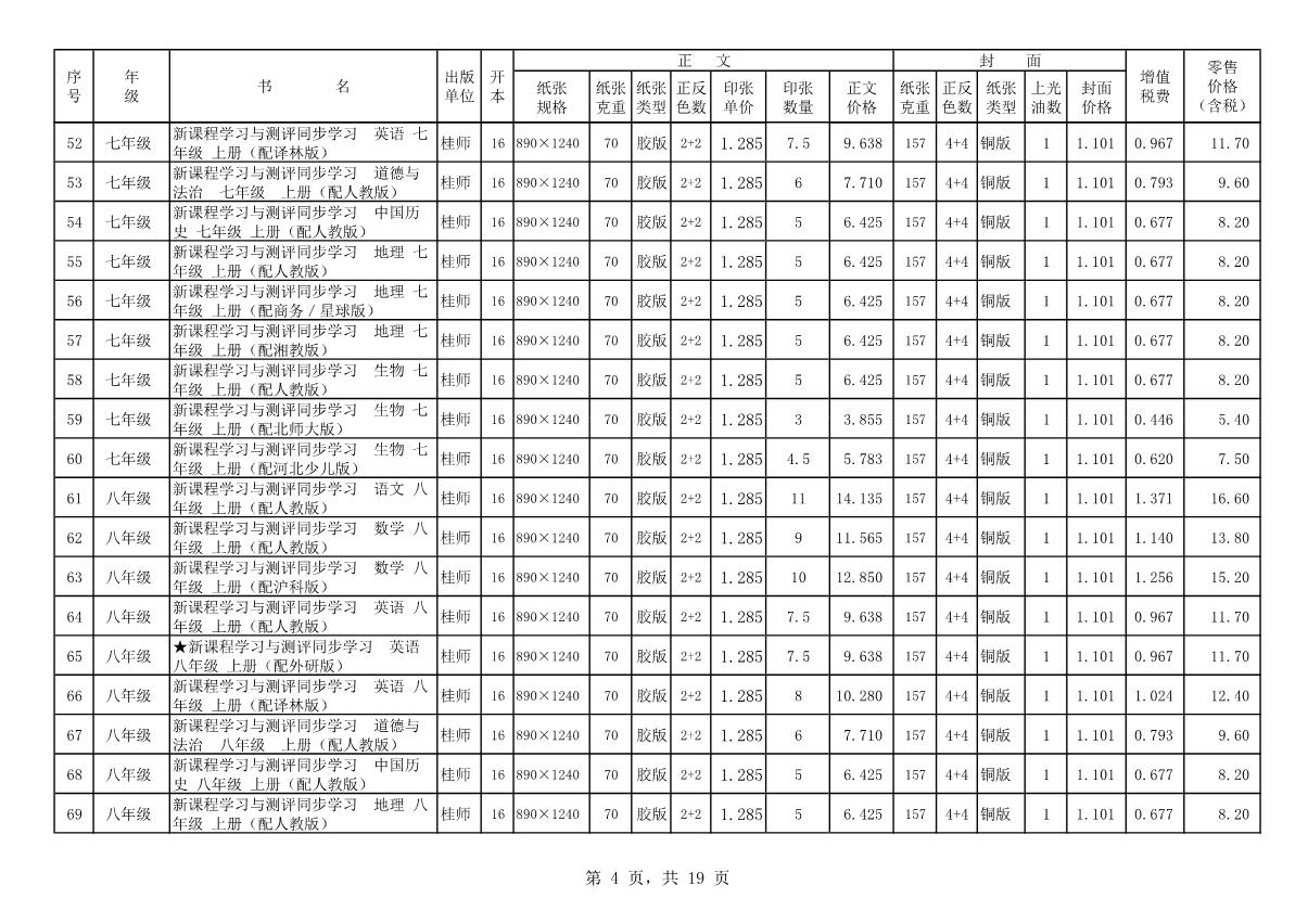 教材、教輔價(jià)格公示