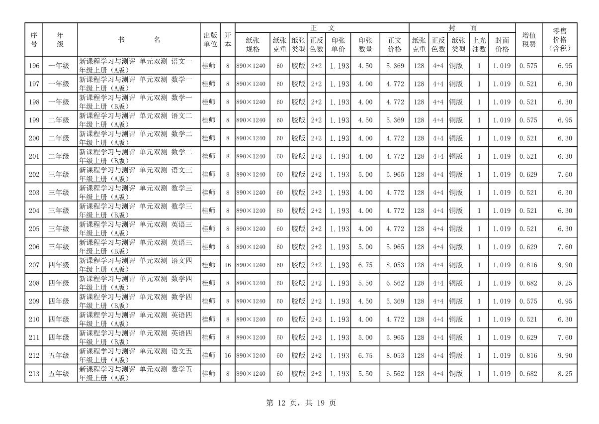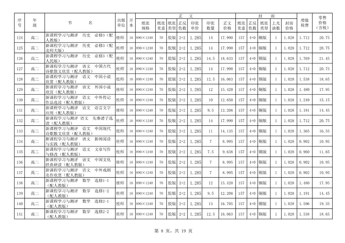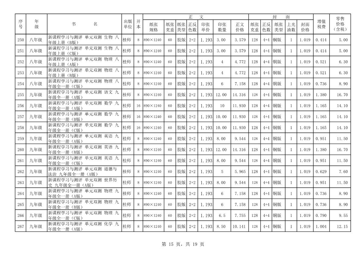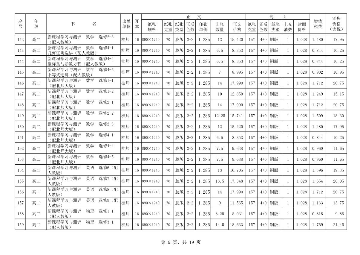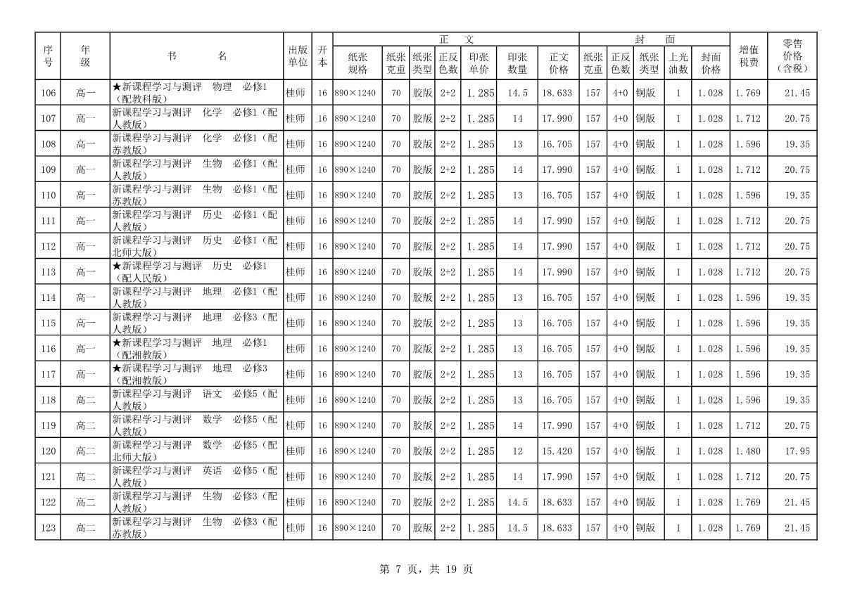 教材、教輔價(jià)格公示