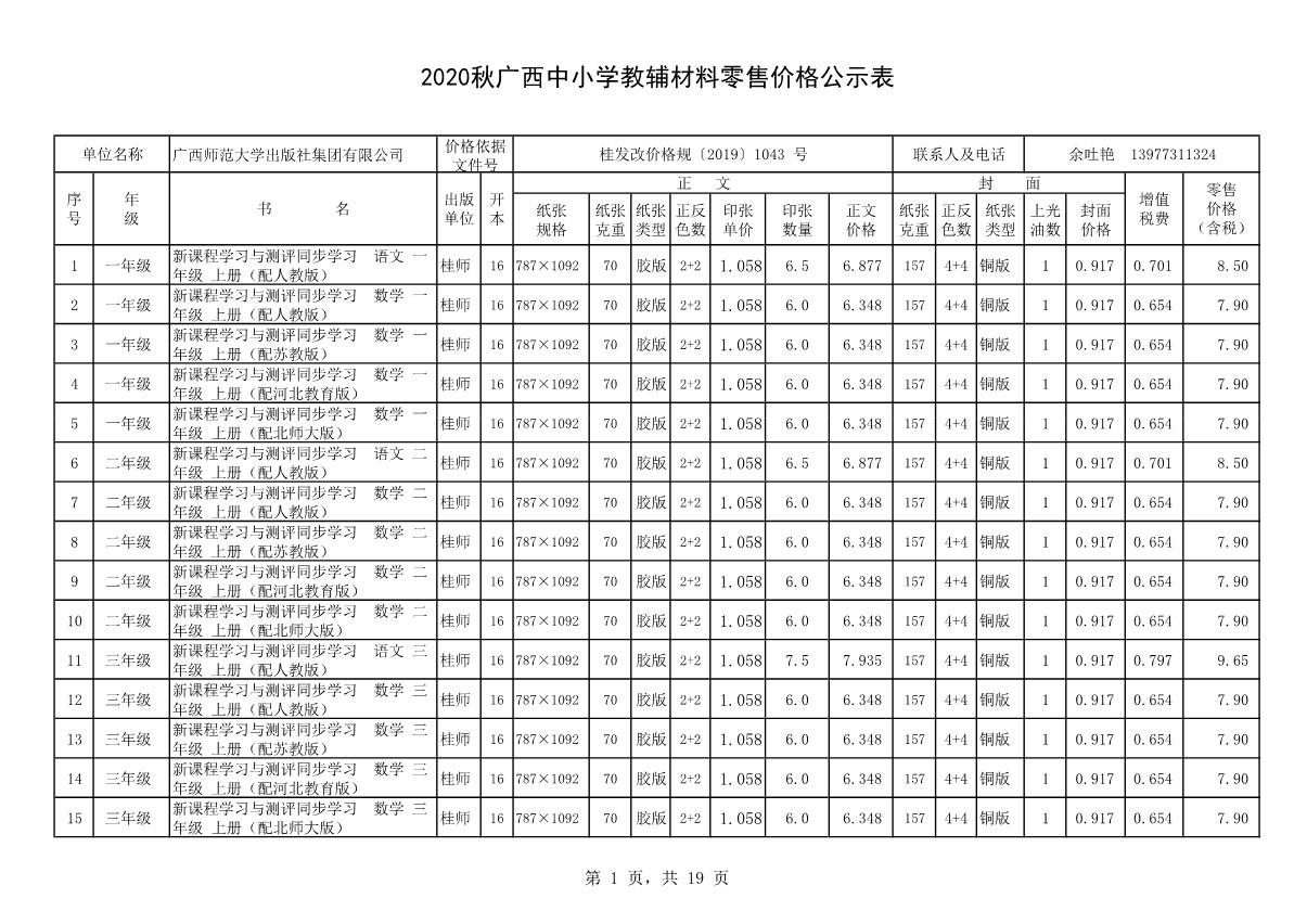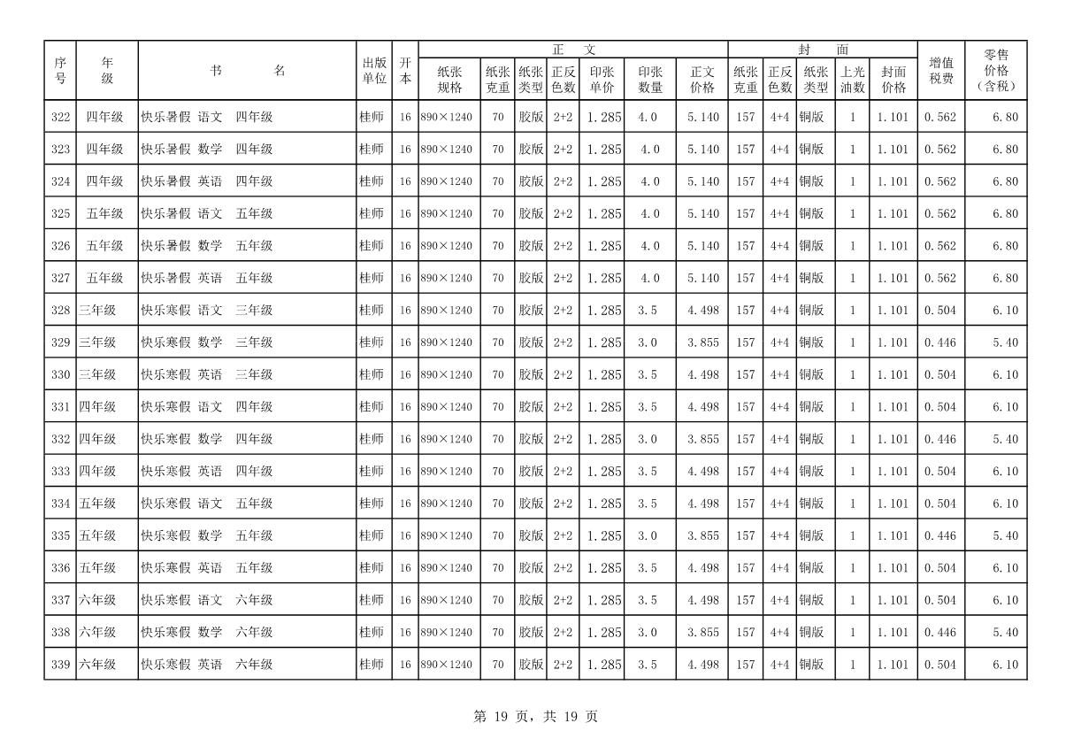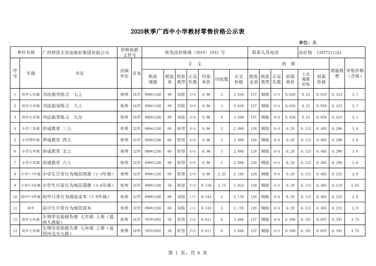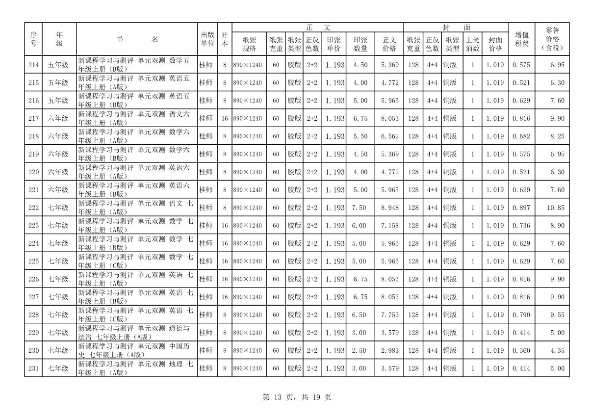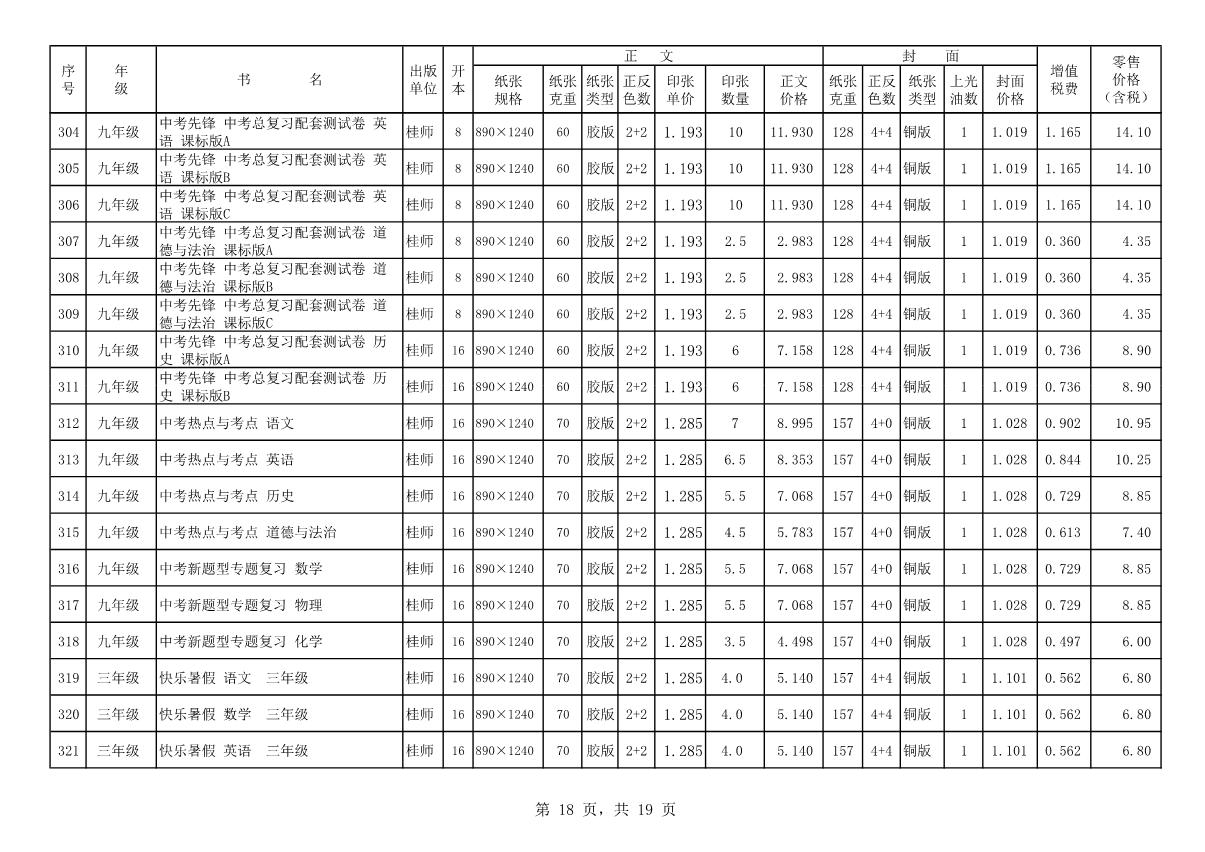 教材、教輔價(jià)格公示